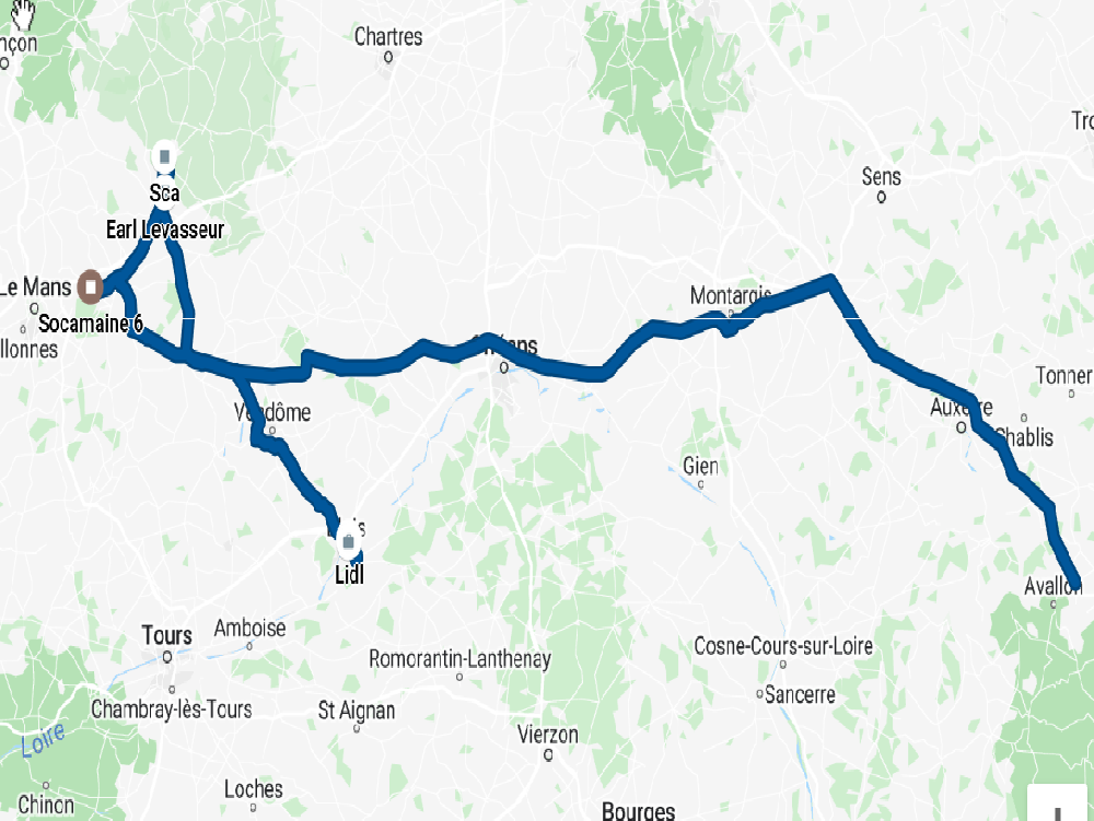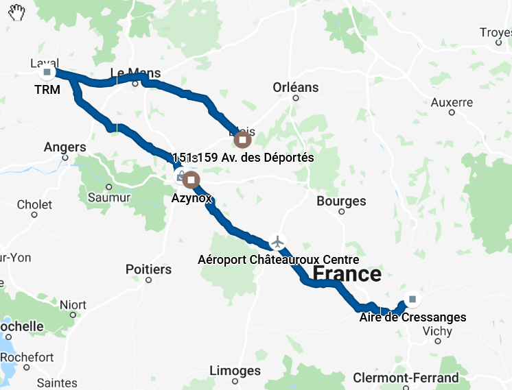 J'ai un premier rechargement à Val du Maine, pour la base Botanic à St Vulbas et je complète à Esvres/Indre, non loin de mon ancien dépôt, ce qui me permet d'aller en despee chercher mon nouveau portable chez Boulanger à Chambray... ça me permet de revendre l'iPhone 11 et d'avoir pas mal de thune qui va m'aider pour mon déménagement car devant l'absence de réponse quant à un prix pour déménager avec la semi (affaires + voiture dedans), je me suis résolu à louer un 11m3...