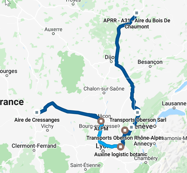 En descendant, j'ai dons Jean-Pierre d'Auxerre au téléphone, puis j'envoie un mail à Michel pour lui confirmer... Et je passe à Genas, au dépôt... Qui est aussi un des sièges administratifs du groupe avec Wancourt...