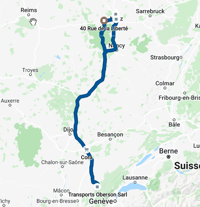 De là, je remonte à Groissiat refaire l'échange de semi et je vais vider chez Gedimat à Oyonnax... Les types se mettent à 3 pour me vider, j'ai un peu de mal à les suivre... Je vais ensuite rechercher une dernière fois ma semi, et en profite pour ranger equerres et sangles, et je monte chez EDA charger pour la Soca6...