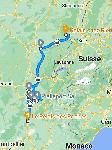 Du coup comme je fait souvent , je prend son numero pi le soir au moment ou j'arrive pour ma coupure je regarde le temp qu'il me reste a faire avec la coupure pi c'est quand meme mieux precis ! Leur techniciens me charge le gros jouet, je me debrouille pour y attacher sans flingué la peinture parceque ça c'est encore un truc que je comprend pas, pourquoi ils sont pas foutu de mettre des anneaux d'arrimage sur le chassis! Enfin c'te foi c'est la bonne , plein pneu sur l'Est ! Je voulais presque me poser à La Cocotte chez l'autre arsouille menfin je trouve un rest plus loin avec un grand parking.
