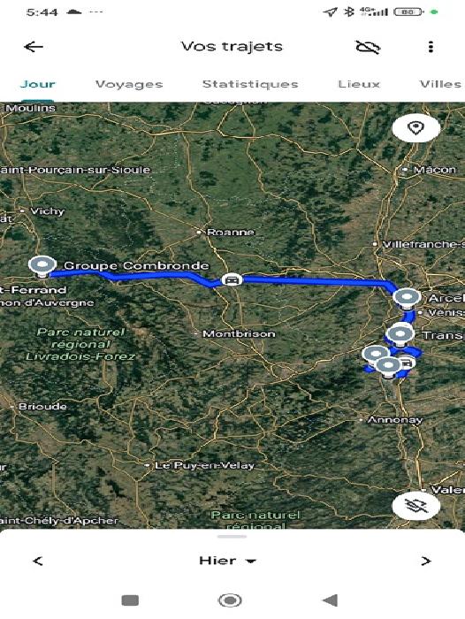 Lundi, démarrage tardif vers 7H00/ 7H15, puis j'irais au PEH, chez Arcelor pour charger, direction Cébazat.
