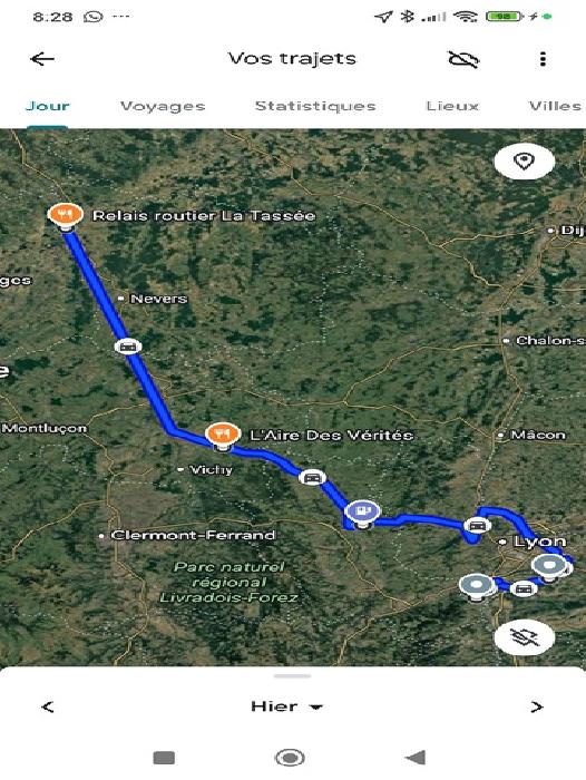Je m'arrête à l'aire de la Loire, car un chauffeur m'a fait un signe en me doublant. Je n'ai pas compris si c'était une salutation, un remerciement ou une alerte...dans le doute, y a pas de doute, comme ca me tracassait, je m'arrête. Au moment où je stoppe, ma moitié m'appelle, allez on fait une trente et puis voilà. De trente, ca passe à quarante, je vais finir par être à la bourre. Même si je ne travaille pas chez Sibourg….