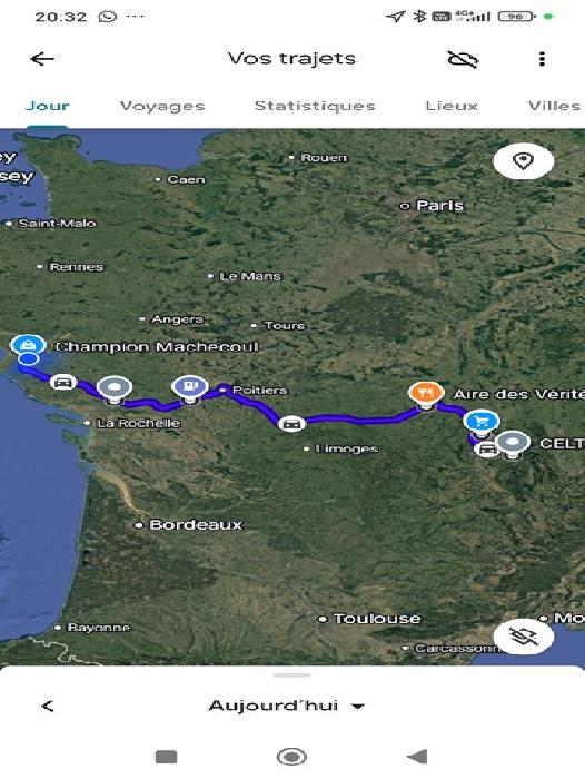 Le trajet est donc agréable sous le soleil, même sur l'arrivée de Bellac, le temps est encore beau et bon. Je roule derrière un camion portugais qui a l'air d'être un peu perdu ; il me semble bien qu'il a hésité de prendre la direction d'Angoulême à la sorite de Bellac, puis à chaque rond point il tourne en rond !! Je continue mon petit bonhomme de chemin jusque dans les environs de Niort, où je stoppe pour une petite quinze, histoire de pendre un peu l'air, et surtout de regarder où les heures peuvent m'emmener ce soir. Au max, c'est dans la ZI du client, alors que je regarde un peu où je pourrais poser ma caravane pour la nuit. Bon, ce sera entre la Roche sur Yon et chez le client.