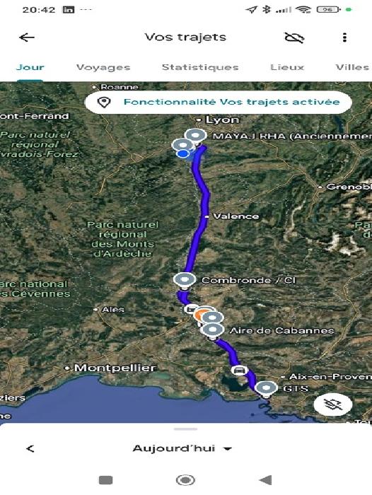 Je vais essayer de descendre au plus bas, vers Roanne? En fait non, ce sera encore plus bas, puisque je stopperais au dépôt de Veauche vers 21H10, après un stop à l'aire de Lapalisse pour une douche et un plat chaud pris à l'ouverture de la cafétéria.