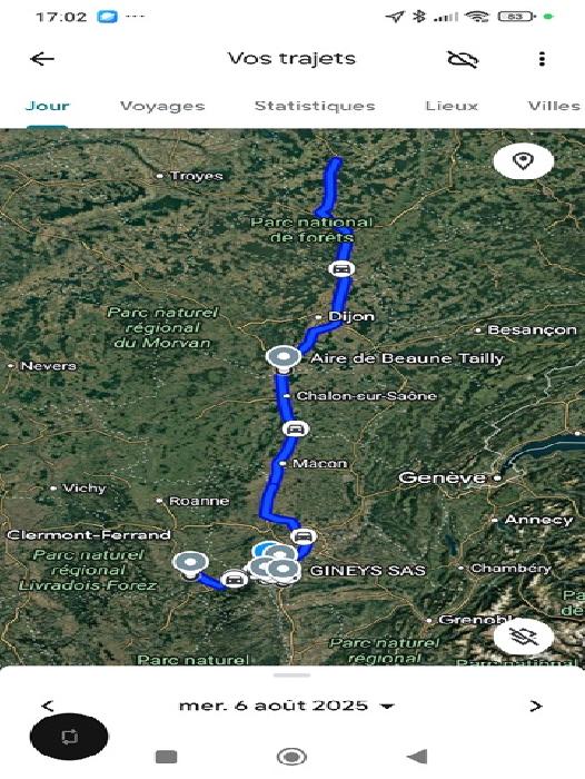 L'A6 est bien roulante, mais les parkings sont bien chargés en touristes mal réveillés ou somnolant. Aucun problème pour rejoindre Lyon, et Virgile me demandent de tenter de livrer mon Reventin en fin de matinée, malgré un RDV demain matin à 7H00. Je lui rappelle mes temps de route, et que même si j'ai gardé une dix pour ce jour, ca va faire serrer pour faire le boulot, si je bouffe du temps pour descendre dans la ZI du Péage au sud de Vienne.