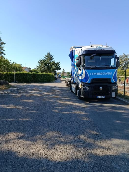 Je ne suis pas trop rassuré avec ce type de chargement, mais rien à bouger (encore heureux) jusqu'au dépôt. Changement de remorque, et Virgile me rejoint sur le second parc pour avoir mon ressenti sur ce type de voyage, même si il a un peu la réponse.