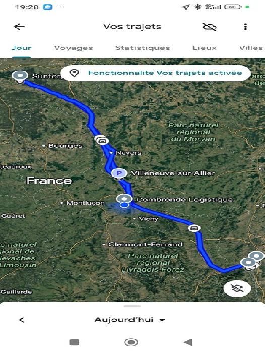 Virgile me contacte et souhaiterais que je livre au plus tôt demain matin, plutôt qu'à l'heure fixée. Attention chef, nous sommes en période de vacances, le personnel est en tension, ca peut ne pas marcher. Je file donc au max des mes heures ; enfin pas tout à fait, puisque j'aurai pu atteindre l'aire des Vérités à Lapalisse, mais vu l'absence d'ombre, je privilégie mon confort en stoppant au dépôt de St Pourçain.