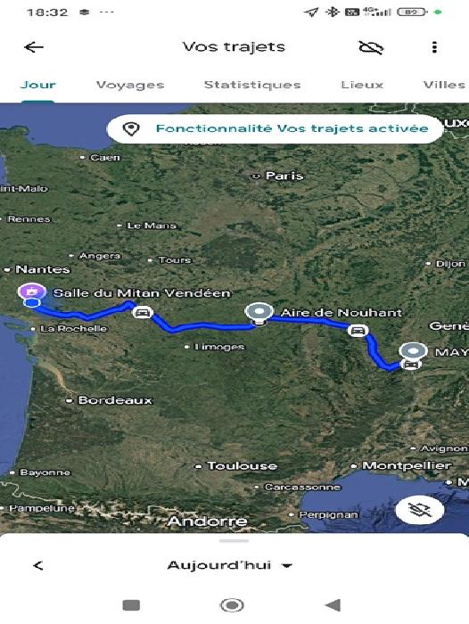 Sur mon trajet, je passe pas mal de temps avec Olive qui a bien repris ce matin. Il file comme prévu sur Bordeaux. Sur sa route, son thermomètre affiche plus de 41° C, pour ma part, je passe de 37 à 38° C, en dans le centre de la France. Ce soir, il fera chaud dans les cabines.