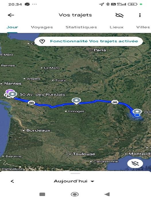 Voilà une journée bien cool, avec pile poil 300 Kms au compteur, et full national. Bon, le conso s'affiche désormais en frôlant la quarantaine, mais en dessous, de peu, mais en dessous.