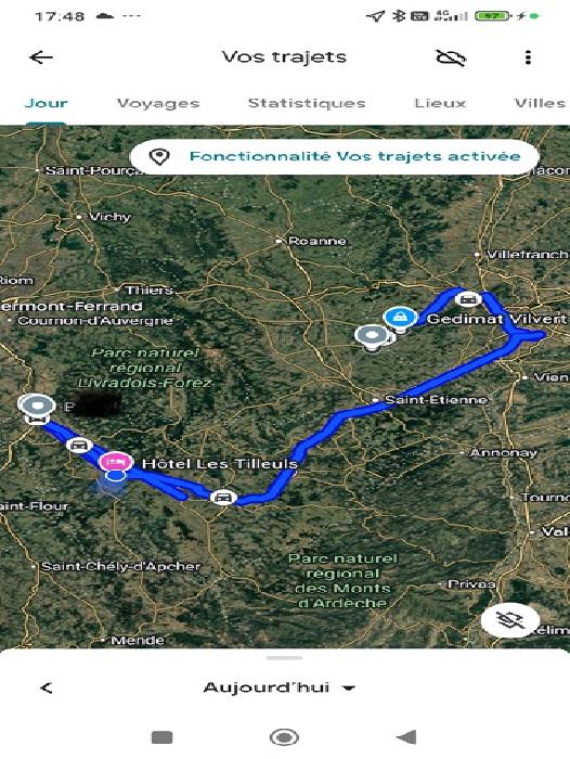 Mais ca va, je pars du site vers 15H00, et je n'ai pas plus de quinze minutes de route pour arriver chez le chargeur de "demain". Très bon accueil lorsque je signale que je suis prévu demain matin. Pas de problème, il n'y a plus de camion en cours, alors ce n'est pas un problème pour eux que de me charger. C'est cool ça. Me voilà avec une demie journée d'avance. Avec Michael, on se retrouve, non pas à l'Avé Maria (hihi), mais aux Tilleuls à Saint Georges d'Aurac. Lui aussi a pu recharger vers Langeac, et demain, il descend sur Lyon.