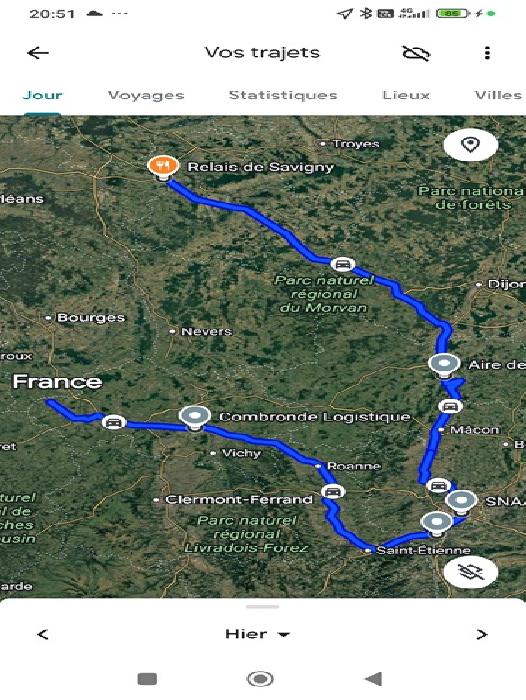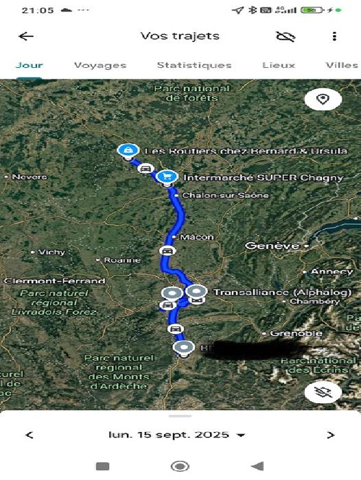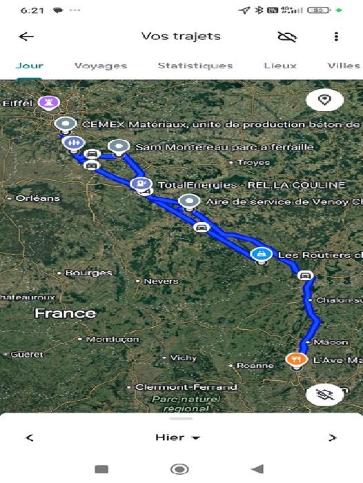 Lorsque je repars, Virgile, qui a un peu pitié de moi, m'annule mon troisième voyage, c'est Jérôme qui assuré le troisième ; il n'est plus très loin de Loire. Ca va, Jérôme m'a renvoyé l'ascenseur, puisque j'étais allé cherché son camion à Meyzieu, lorsqu'il était au bout de ses heures, il y a quelques mois.