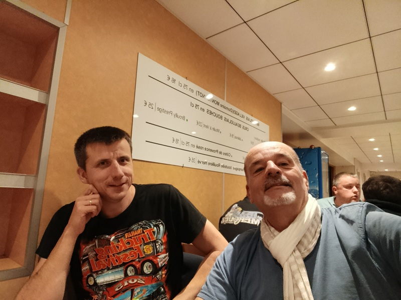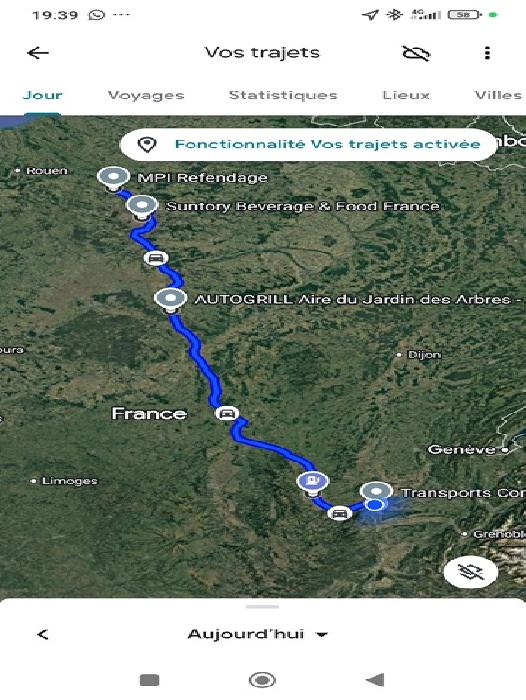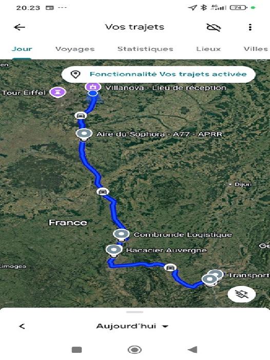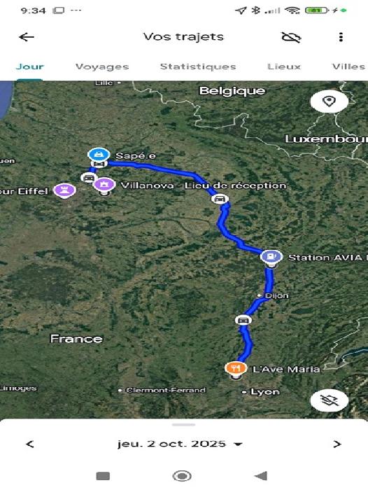 J'appelle tout de même un spécialiste du secteur, à savoir Mich07, qui me confirme que je ferais qq kms de trop, mais, d'après lui, il n'y a pas de zone de travaux, ou de routes déviées, même si Maps m'avait rassuré sur ce point, c'est toujours bon d'avoir une confirmation par un chauffeur. Je le pensais à la montée, mais en fait il est à Reims, ou dans le secteur, et devrait couper ce soir, chez lui à Arnas. Je dis chez lui à Arnas, car l'Avé Maria, est un peu sa seconde maison. Il faut le voir rentrer, claquer les fesses des serveuses, mettre ses pantoufles, et demander son rond de serviette : c'est impressionnant!