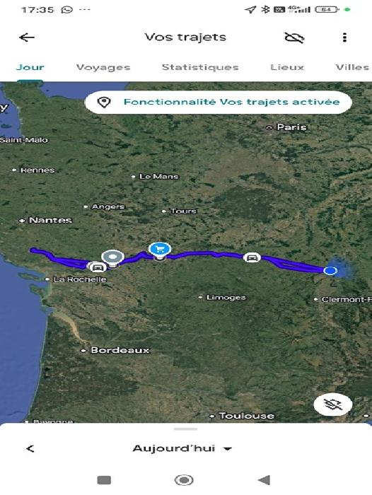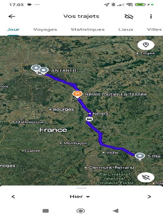 Je visais le relais de Jardres qui a réouvert il y a un an, et je l'atteins avec 8H40 de volant.