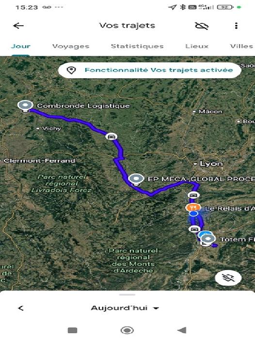 Bien, me voilà rassurer désormais, je peux reprendre la route. Olivier qui est devant moi, me contacte, car il monte aussi à La Ferrière, mais il est parti directement du dépôt. Il sera le premier à vider demain.