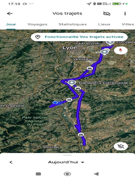 Ne souhaitant pas arriver avant 8H30 sur le secteur de Givors, je couperais quinze minutes sur l'aire de repos avant le péage de Veauchette. J'ai bien fait, au fur et à mesure de on arrêt Maps change de couleur et lorsque je suis dans le contournement de St Chamond, je m'aperçois que ce n'est qu'à l'approche de la sortie Givors centre, que le ralentissement est encore présent. Et c'est confirmé à mon arrivée. Impeccable donc.